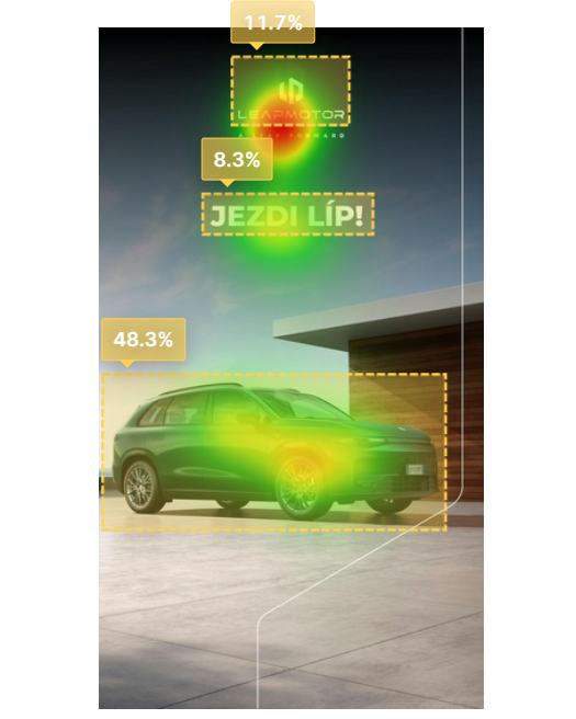 Tento unikátní systém využívá poznatky o tom, jak lidé sledují vizuální obsah – zkoumá, kam se dívají a co upoutá jejich pozornost – a kombinuje je s umělou inteligencí. Vychází přitom z databáze více než 300 tisíc měření, takže dokáže přesně odhadnout, které části reklamy diváky zaujmou a zůstanou jim v paměti. Díky tomu zvládneme během několika hodin předpovědět, jak bude vaše reklama fungovat napříč médii.